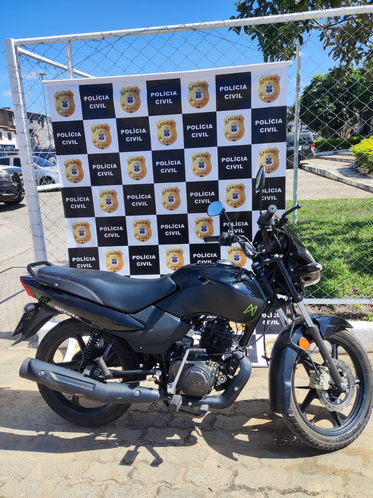 A Polícia Civil da Bahia, por meio da Delegacia de Repressão a Furtos e Roubos (DRFR) de Vitória da Conquista, recuperou no sábado (07/06/2025) uma motocicleta marca/modelo MOTTU/SPORT 110I, PRETA, 2025/2025 que havia sido subtraída do proprietário, após locação da mesma.