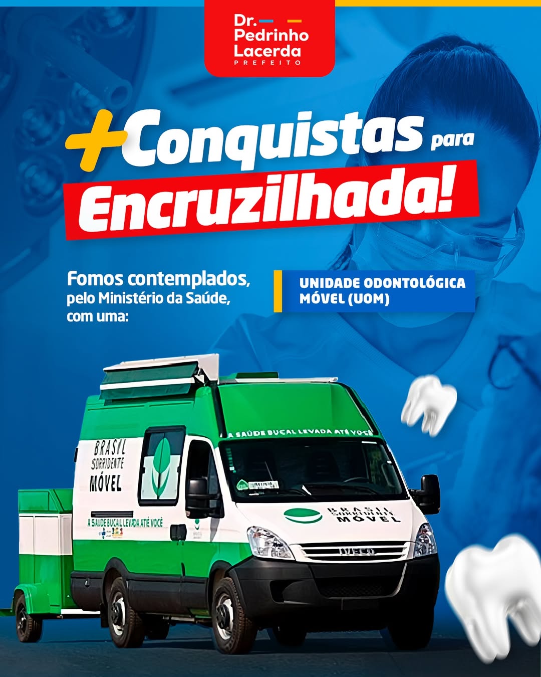 A semana já começou com sorriso no rosto e boas notícias na bagagem! 🤩 - É com muita alegria que compartilho com vocês mais uma conquista importante para a saúde de Encruzilhada: fomos contemplados com uma Unidade Odontológica Móvel (UOM)! Esse consultório sobre rodas é totalmente equipado e adaptado para levar atendimentos odontológicos de qualidade às comunidades, principalmente às que ficam mais distantes das unidades fixas de saúde. A ação será desenvolvida pelas Equipes de Saúde Bucal, em conjunto com a Estratégia de Saúde da Família, garantindo mais acesso, cuidado e prevenção para a nossa gente. Mais saúde bucal, mais dignidade e mais presença onde o povo precisa!❤️ - #PrefeitoDrPedrinho #DrPedrinhoLacerda #Encruzilhada #Bahia