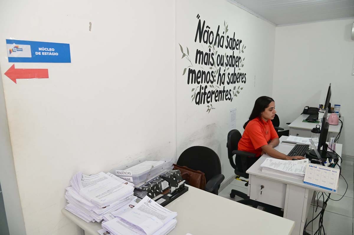 A técnica do Núcleo de Estágio, Vilneide Alves, explica o papel do setor na intermediação entre os estagiários e as diferentes secretarias e órgãos que os recebem. “Recepcionamos esses estagiários, que colocam o currículo nas secretarias específicas dos seus conhecimentos, e observamos quando chega uma comunicação interna de que o setor está necessitando do estagiário. Entramos em contato com o estudante, pedimos a documentação dele e mandamos confeccionar o contrato. Aí, encaminhamos o estagiário para a secretaria que ele vai executar suas atividades. Também cuidamos do recesso remunerado, que eles têm direito, e o desligamento quando o contrato se encerra, a pedido do estagiário ou conforme a necessidade da Prefeitura”.