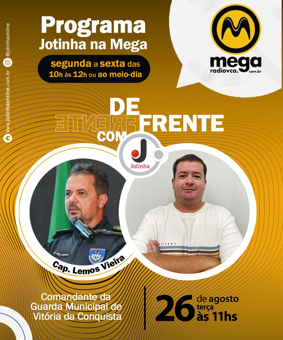 No quadro “De Frente com Jotinha”, vamos receber uma entrevista especial com o Capitão Lemos, comandante da Guarda Municipal de Vitória da Conquista.