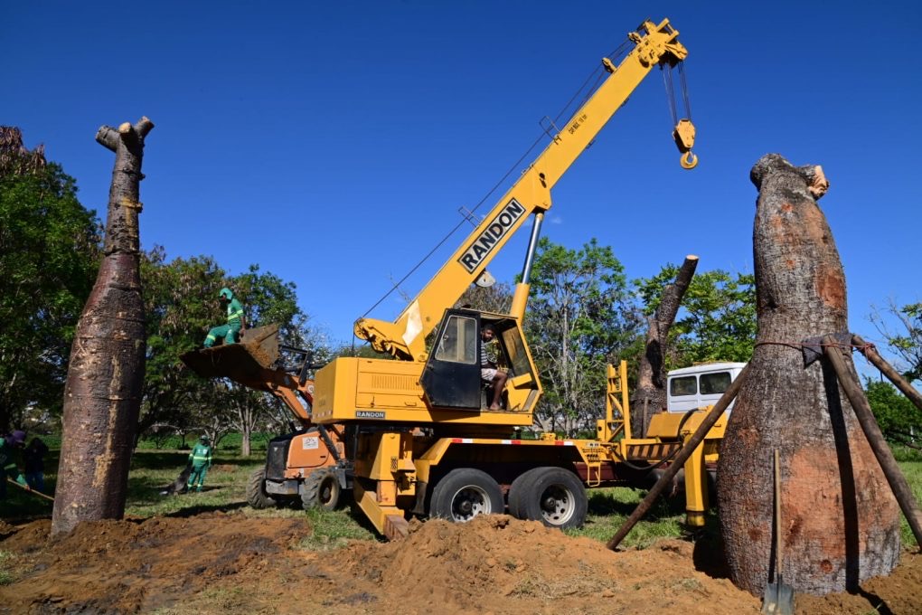 Ana Cláudia também mencionou que a barriguda possui uma reserva de água em sua estrutura, o que a torna capaz de resistir a períodos de seca. “Estamos realizando uma adubação reforçada para ajudar no enraizamento. Temos experiência com o transplante de barrigudas, e já temos uma que foi transplantada há oito anos no nosso centro florestal, que está belíssima”, completou.