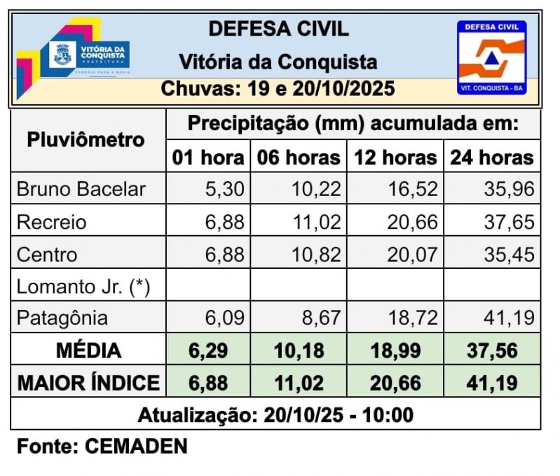 A Prefeitura de Vitória da Conquista tem mantido um monitoramento constante das condições climáticas e do impacto das chuvas na cidade. Com uma previsão que indicava cerca de 40 milímetros de chuva para a região, os registros atuais de 37 milímetros confirmam que as condições estão dentro do esperado.