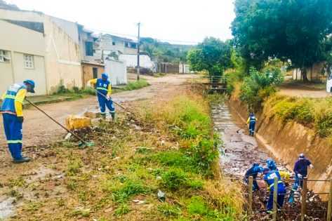 Com as fortes ocorridas na noite de domingo (19) e na segunda-feira (20), foi registrado acúmulo de terra e entulho nos canais, mas a equipe da Prefeitura iniciou logo cedo a limpeza para garantir que a água siga o fluxo, sem ocasionar alagamentos.