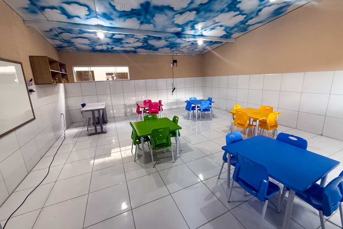 O trabalho contou com ampliação de três salas de aula e uma sala de professores, construção de três sanitários, espaço para refeições, instalação de telhado termoacústico e de forro no pátio. Além disso, foi construído o muro da unidade, substituídas redes elétrica e hidráulica, executados serviços de pintura geral e lúdica e instalação de um parque infantil.