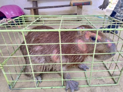 Durante a avaliação, foram constatadas, além das escoriações, dificuldade de locomoção e sinais de estresse. No Cetas, a capivara recebeu medicação, alimentação e hidratação, sendo posteriormente alojada e mantida em observação.