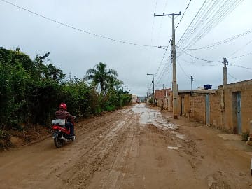 Com as fortes chuvas que atingem Vitória da Conquista, os moradores da Avenida 03, no bairro Vila Elisa, estão enfrentando grandes dificuldades. A via, sem pavimentação, fica tomada pela lama e buracos, dificultando a passagem de pedestres e veículos.