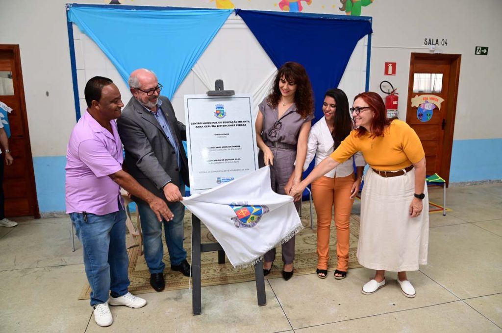 A Prefeitura Municipal de Vitória da Conquista realizou, nesta quinta-feira (28), a entrega oficial à comunidade da revitalização do Centro Municipal de Educação Infantil (Cmei) Anna Geruzia Bittencourt Ferraz, no loteamento Nova Cidade, que comporta aproximadamente 200 alunos. Trata-se do 87ᵃ espaço educacional totalmente reformado pelo atual governo.