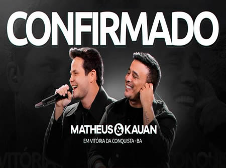 Os fãs de sertanejo em Vitória da Conquista podem comemorar: Matheus & Kauan, uma das duplas mais populares do Brasil, está confirmada para um show especial. O evento, que ainda não teve todos os detalhes divulgados, promete ser um dos maiores do ano. O que chama atenção é o mistério em torno da organização. Sabe-se que uma empresa local está à frente da produção, mas o nome e os detalhes específicos estão sendo mantidos em sigilo, o que tem alimentado a curiosidade do público. O repertório da dupla deve incluir grandes sucessos, como “Ao Vivo e a Cores”, “Que Sorte a Nossa” e “Te Assumi Pro Brasil”, garantindo uma noite de muita música e emoção. Mais informações serão divulgadas em breve, e a expectativa é de que o evento movimente toda a Joia do Sertão Baiano.
