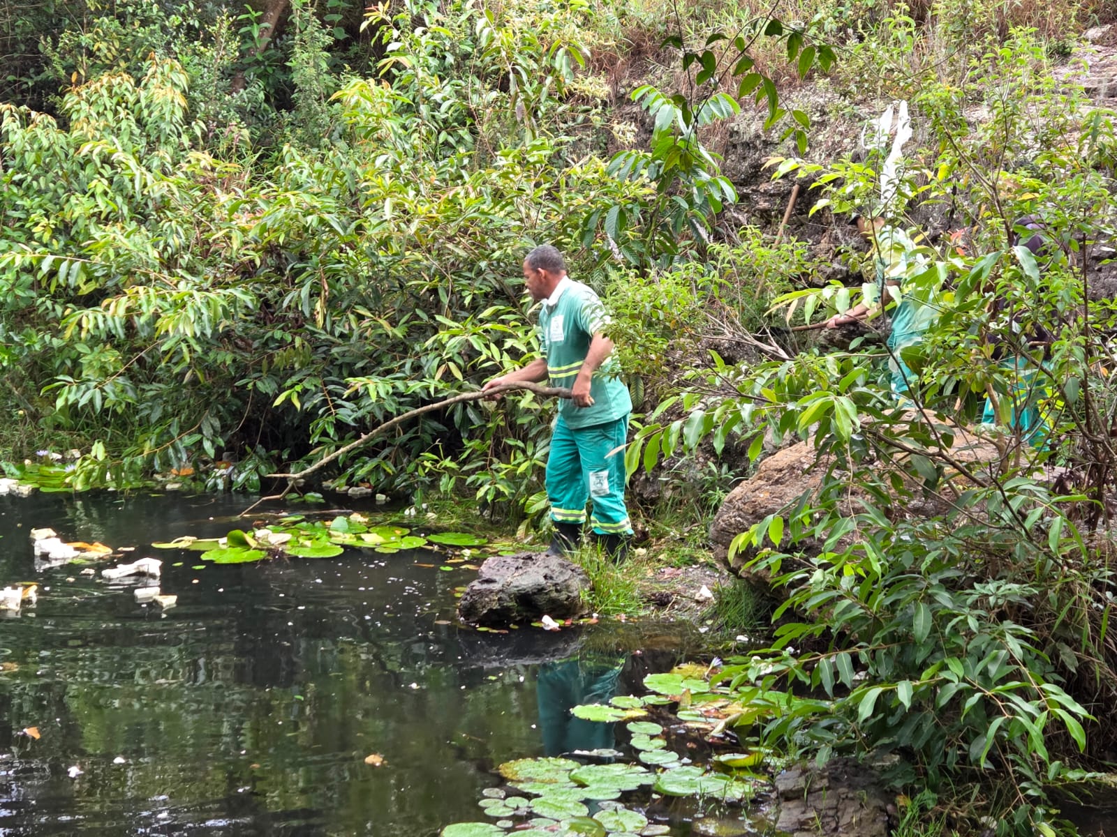 Com o apoio da Guarda Municipal, a ação contou com a participação de cerca de 15 servidores das equipes de fiscalização ambiental e de paisagismo. No local, foi retirado uma quantidade de lixo significativa descartada por pessoas que visitam o local.