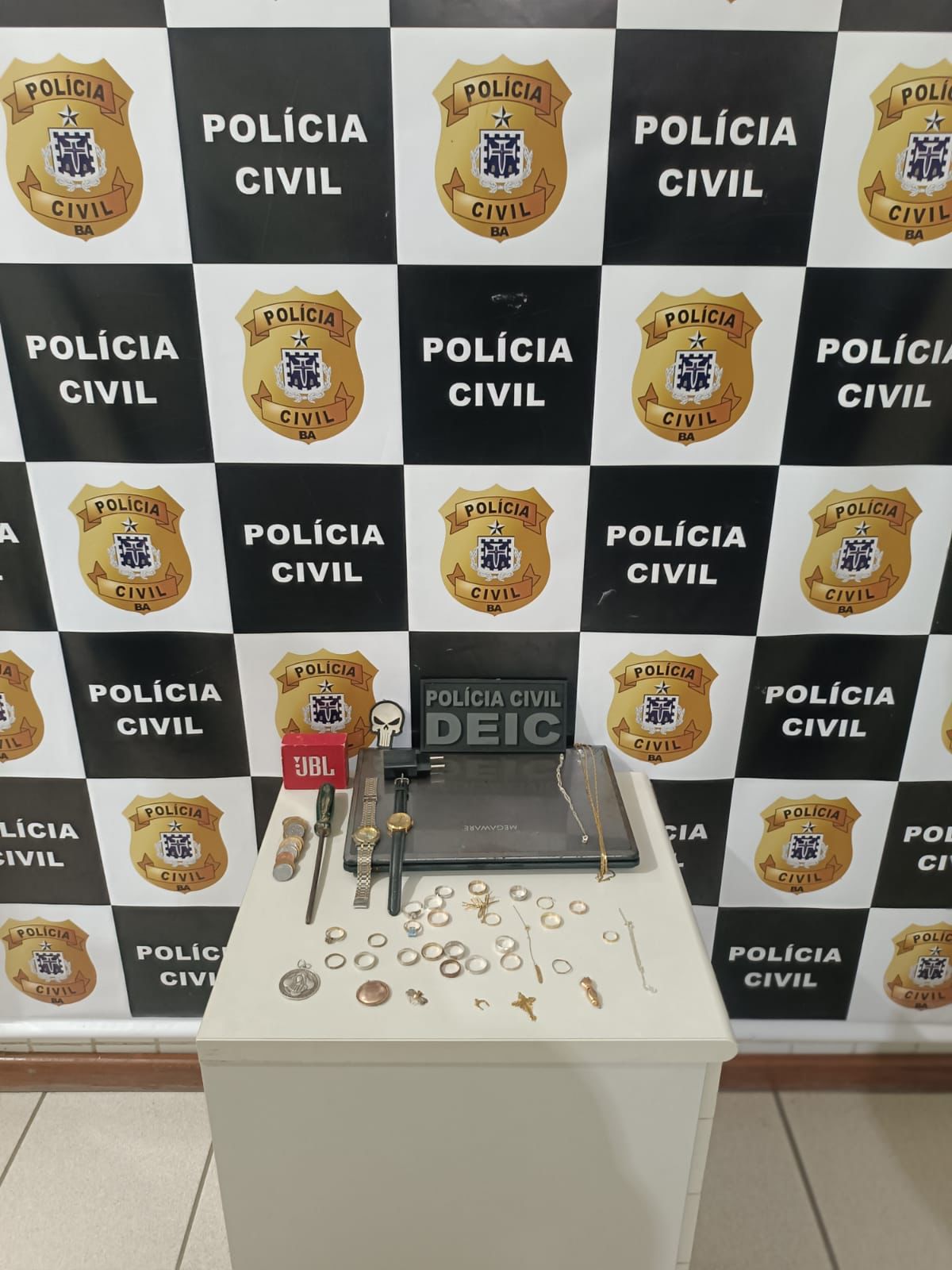 Ontem 19/03/2025, por volta das 16h;00, Investigadores da Delegacia de Repressão a Furtos e Roubos de Vitória da Conquista tomaram conhecimento sobre um arrombamento num escritório de compra e venda de ouro, na travessa Justino Gusmão nº05,conforme BO nº 00209735/2025-DRFR/VCA ,registrado pela vítima, que da conta do furto de joias avaliadas em R$ 50.000,00 (cinquenta mil reais) . Ato contínuo os policiais empreenderam diligencia com a finalidade de identificar e localizar os possíveis autores do fato delituoso, que após obterem as imagens de câmeras de vídeo monitoramento próximo ao local do crime, os investigadores suspeitaram de um dos indivíduos, o qual já com ficha criminal pela DRFR de Vitória da Conquista, trata-se de um homem de 30 anos. Foram feitas buscas pela cidade para localizar o possível suspeito, e por volta das 16:00 horas os investigadores lograram êxito nas buscas, vindo a prender o suspeito no interior de uma relojoaria localizada na Rua Francisco Santos, em companhia de uma mulher jovem de 34 anos. O suspeito estava tentando vender as joias furtadas para o proprietário da relojoaria, um senhor de 58 anos. O autor do furto, de posse dos objetos furtados, confessou tal delito e apontou o segundo autor do delito, sendo ele um homem de 39 anos. Foi informado aos investigadores que ele se encontrava de posse do relógio furtado ,marca Invicta. Ato contínuo, foram feitas novas diligências para localizar o co - autor. Horas depois foi logrado êxito nas buscas, vindo o segundo homem a ser localizado à praça Vitor Brito. Os dois homens foram presos em flagrante e apresentados Autoridade Policial Plantonista para lavratura do procedimento próprio. Eles responderão pelos crimes de FURTO QUALIFICADO MEDIANTE CONCURSO DE DUAS OU MAIS PESSOAS. (ART. 155, § 4°, INC. IV DO CPB) e FURTO QUALIFICADO COM DESTRUIÇÃO OU ROMPIMENTO DE OBSTÁCULO (ART. 155, § 4°, INC. I DO CPB) e estão à disposição da Justiça Criminal. Após exame de Corpo delito foram encaminhados ao Conjunto Penal de Vitória da Conquista.
