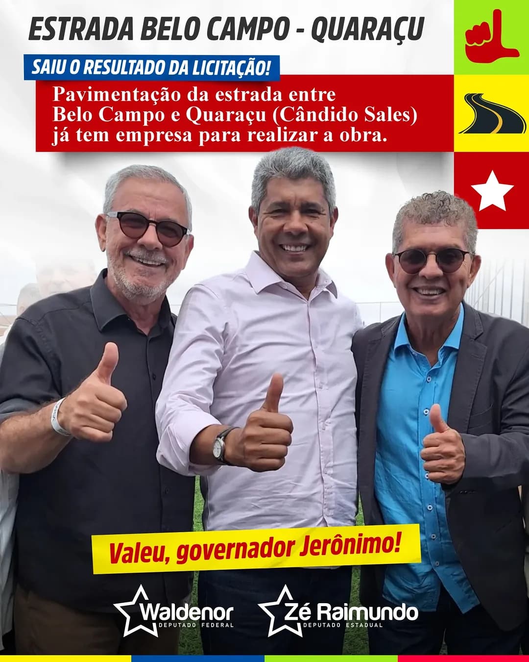 Obrigado, governador @jeronimorodriguesba, por mais uma obra de grande porte na nossa região! Serão quase R$ 20 milhões investidos na pavimentação de 18 km. A empresa vencedora foi a construtura Gil Ferreira LTDA.