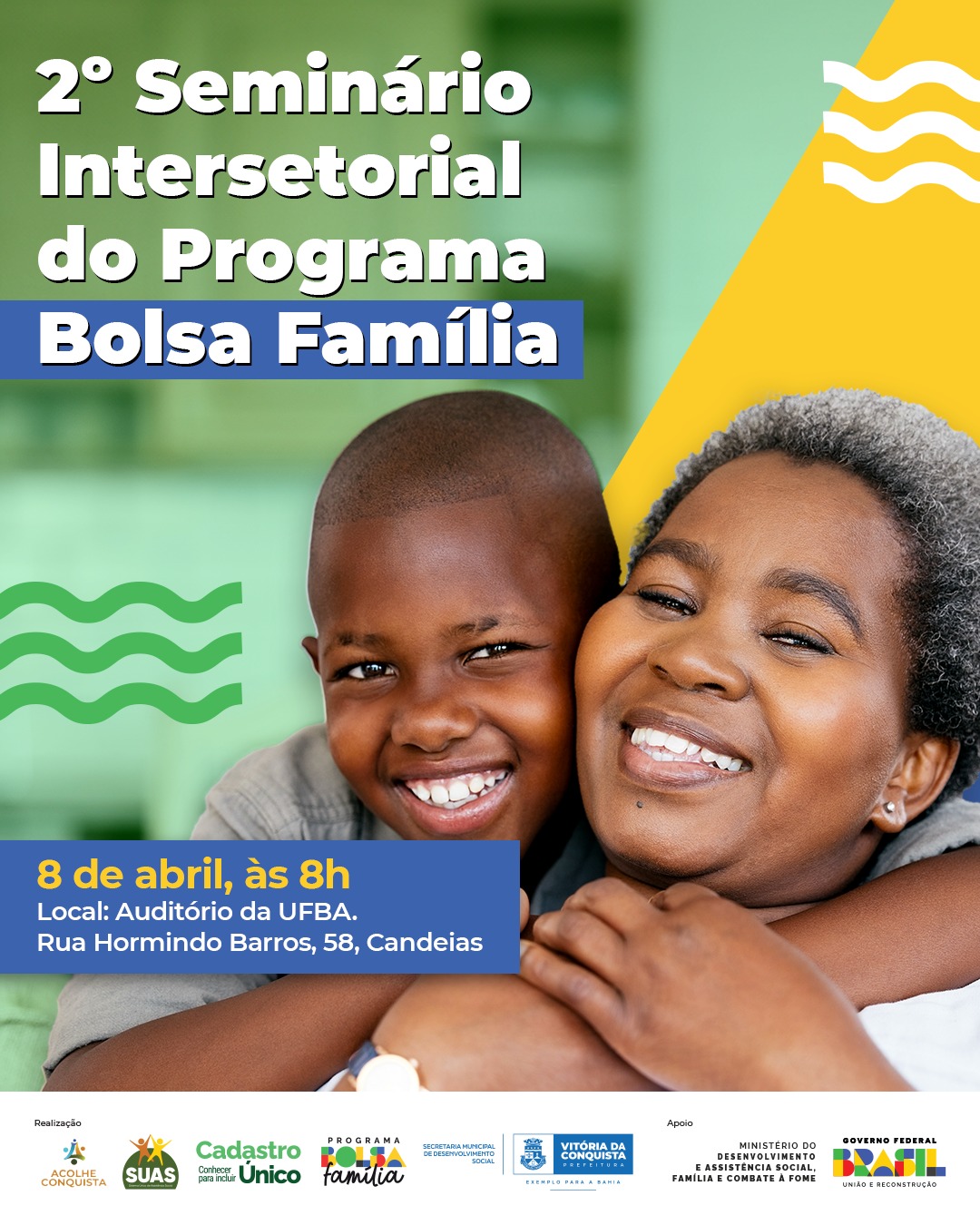 Nos dias 8 e 9 de abril, a Prefeitura de Vitória da Conquista, em articulação com o Ministério de Desenvolvimento e Assistência Social, Família e Combate à Fome (MDS), realiza a segunda edição do Seminário Intersetorial do Programa Bolsa Família. O objetivo do seminário é aprimorar o trabalho intersetorial com as famílias beneficiárias do programa, assegurando o acesso a serviços públicos nas áreas de educação, saúde e assistência social.