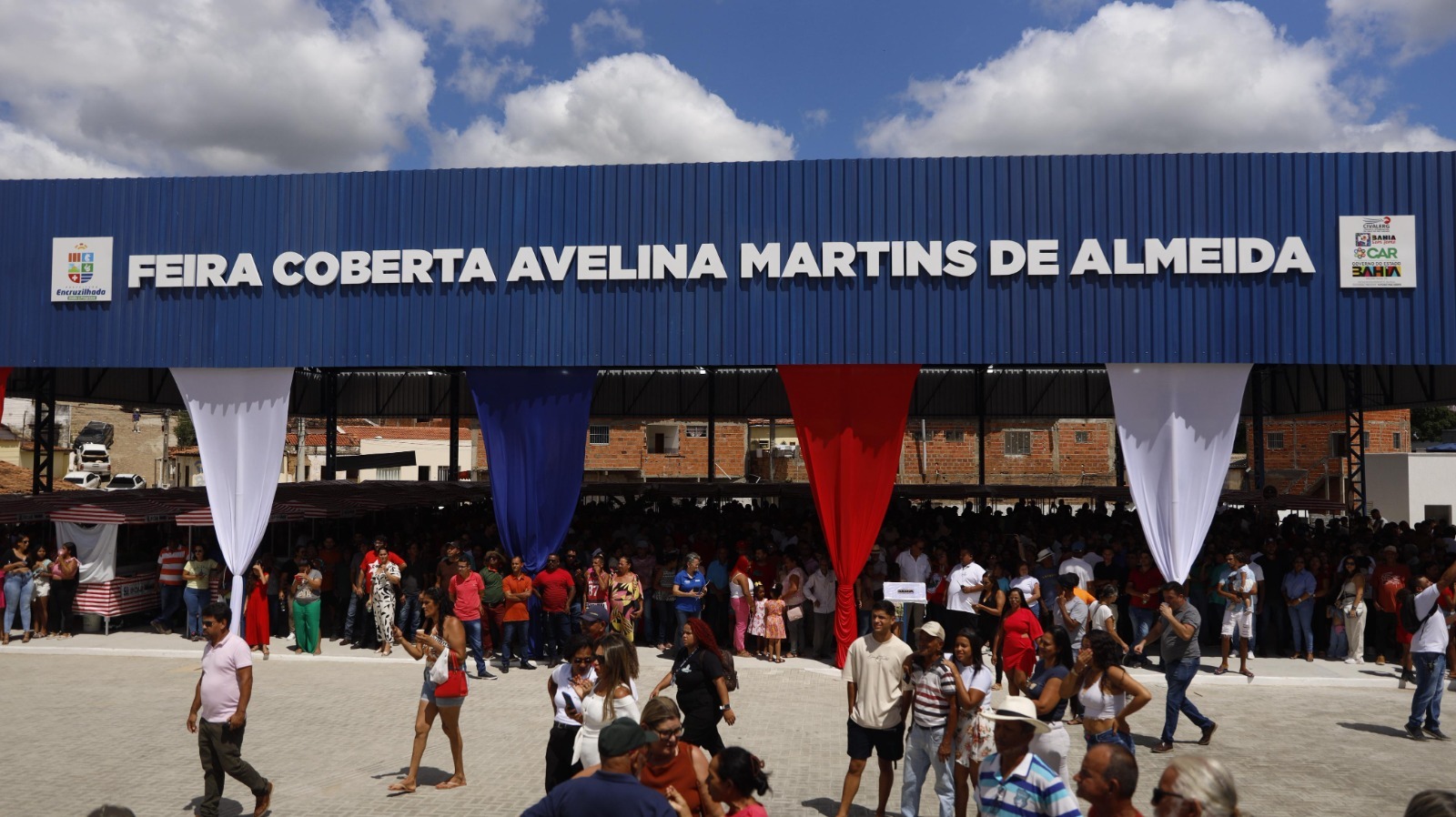 O governador também inaugurou a Feira Avelina Martins de Almeida, que teve cerca de R$ 1,3 milhão destinado à estruturação e cobertura de um amplo espaço para acolher 80 agricultores familiares de distritos e localidades rurais de Encruzilhada. Agricultora e presidente da Associação de Agricultores do Vale do Mangerona, Joeni Araújo contou que a feira livre era realizada no centro da cidade, sem a estrutura adequada para os pequenos agricultores, e foi remanejada para um espaço que acolhe uma grande quantidade de comerciantes, sem expor a produção ao sol.